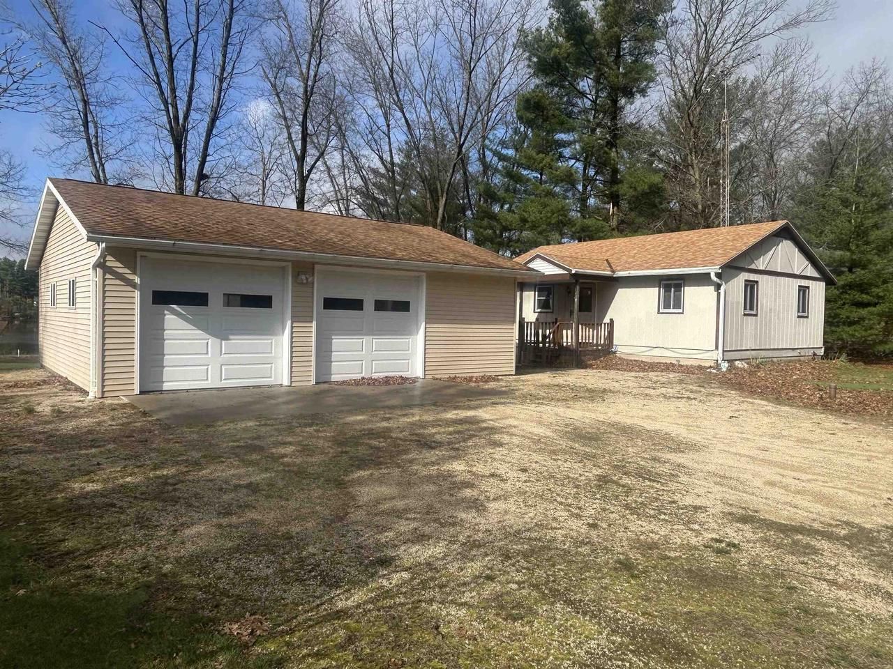 OPEN HOUSE: Saturday 4/25/26 1-3PM! 150' of pristine White River Frontage awaits you boasting a spotless 2 bed 1 bath year round home with vaulted ceiling, newer 23X16 waterside deck and oversized 32X28 2.5 car garage. Home is nestled into the gently sloping lawn and has a full dry lower level. Property has its own quaint spring fed pond; just a beautiful property. Canoeing, kayaking, fishing, swimming, wildlife galore. Pontoon boats permitted. Shed & Pier are included! Don't miss out on this one! This home is 4 season, and turnkey so you can enjoy the moment you own! Come enjoy the peace and tranquility you deserve...